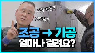 - ▶ 미장 표면을 점검하고 재료와 공구를 준비합니다.
